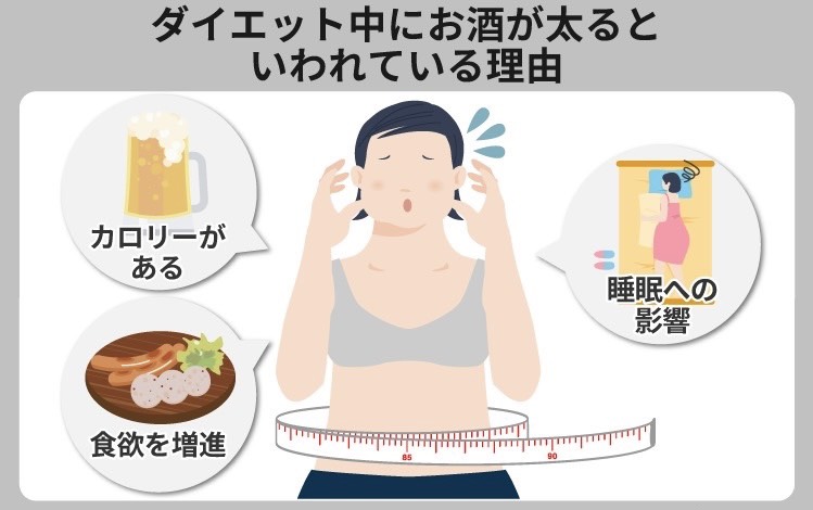 ダイエット中にお酒が厄介なのは、「カロリー」と「代謝抑制」の両面からです。